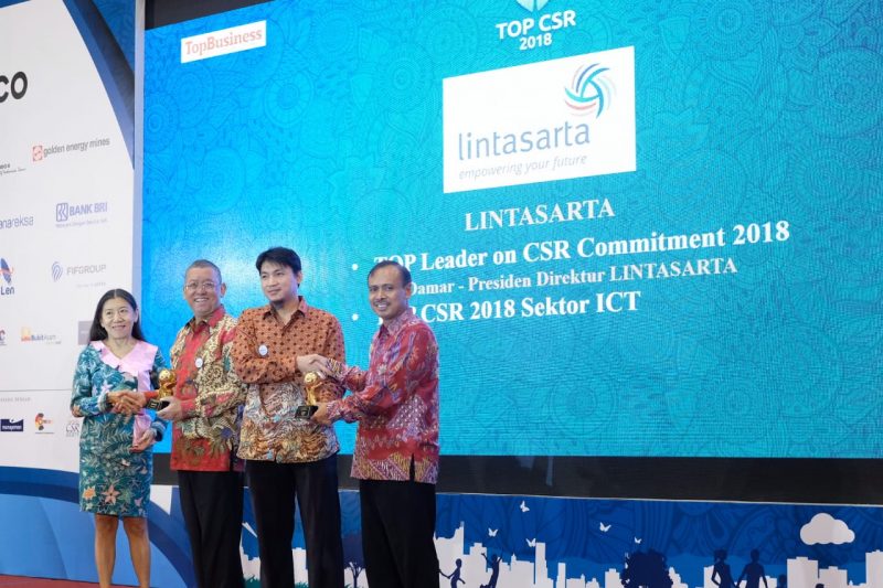 Lintasarta has made another achievement in 2018 by gaining 2018 Top Corporate Social Responsibility (CSR) award from Top Business in collaboration with a number of credible institutions. The award was received after going through a selection and assessment process involving field research, as well as interview sessions by juries from experts, academics, and CSR practitioners.